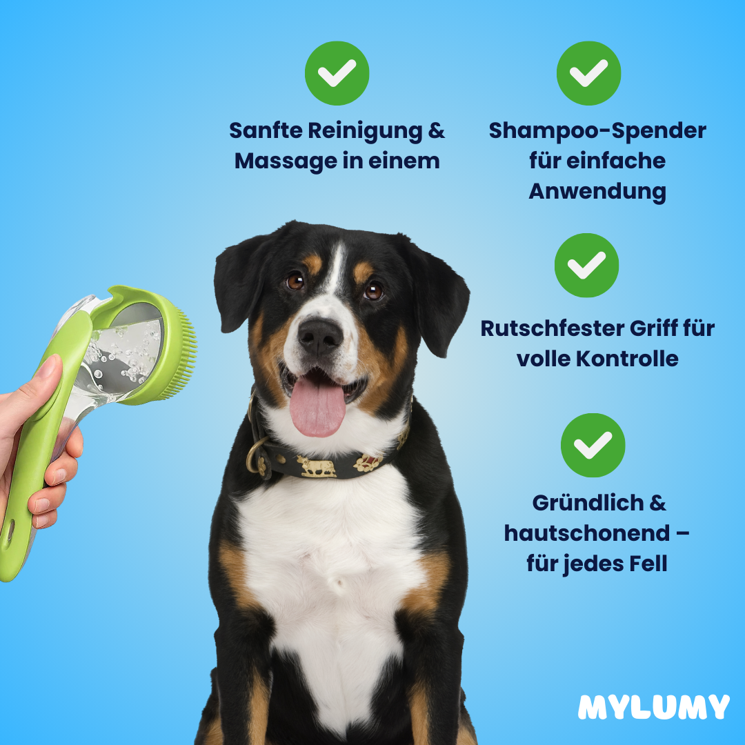 Mit der innovativen Hundewaschbürste wird Fellpflege endlich einfach, sanft und angenehm – für Hund und Mensch.
