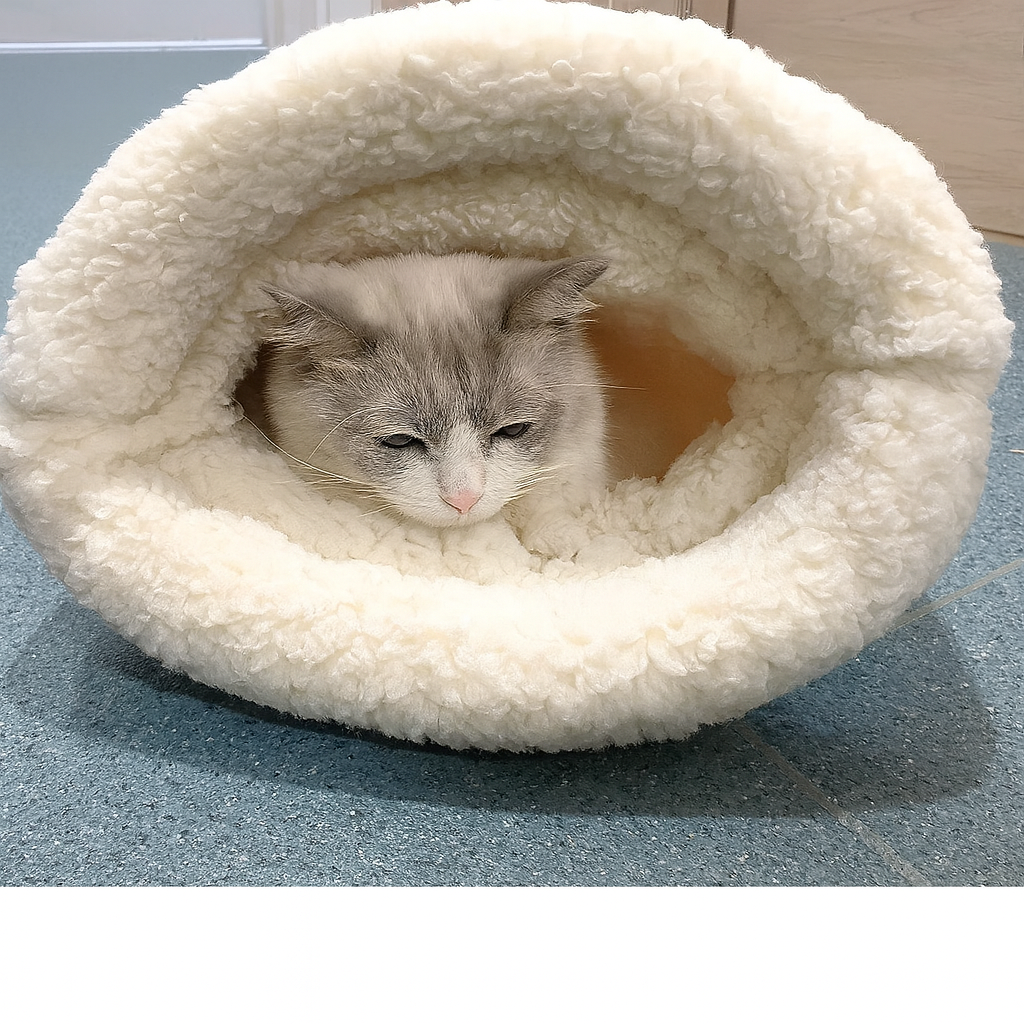 Unruhiger Schlaf: Durch die weiche Polsterung und geschützte Form schläft deine Katze tiefer und entspannter.